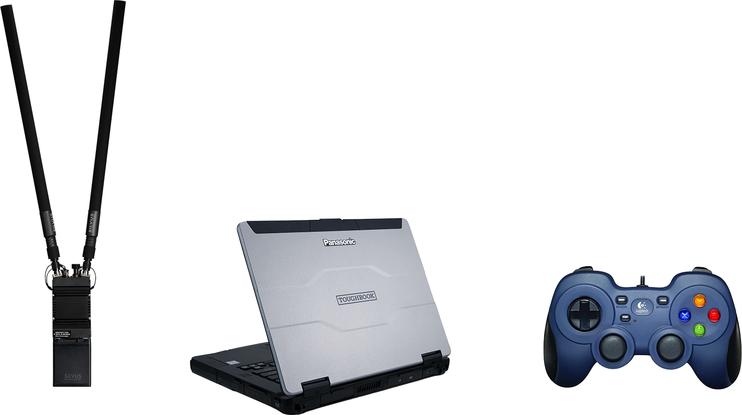 The transmission and control system of the DeltaQuad Evo Tactical includes three essential components: a radio modem and antenna(s), and a Toughbook with a hand controller.
