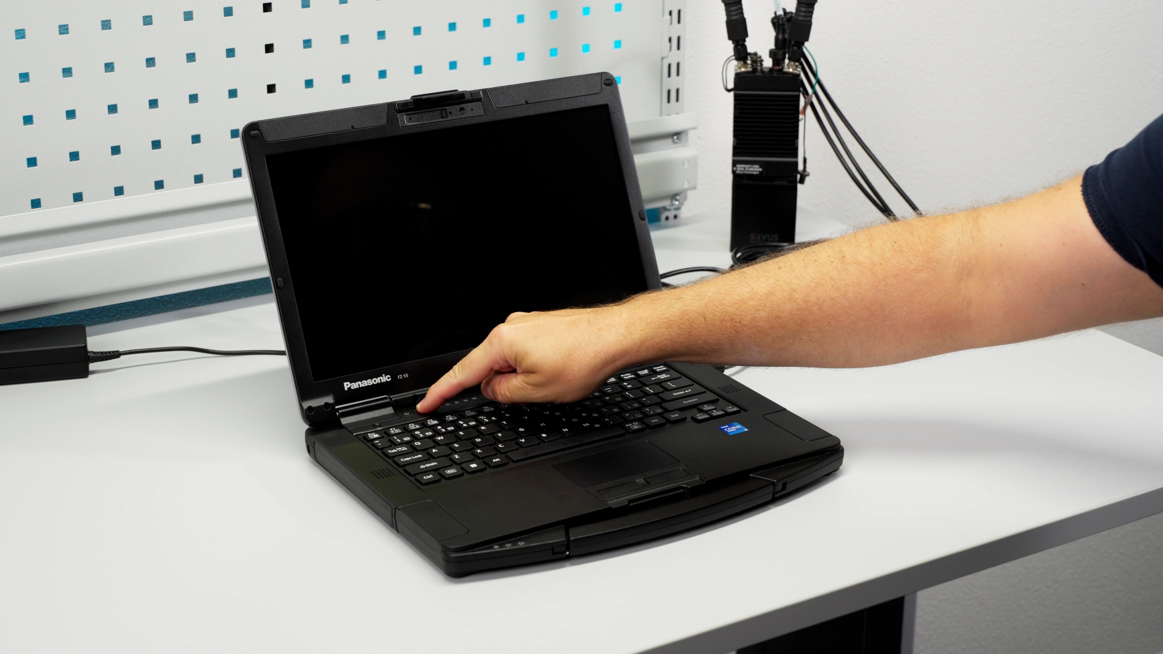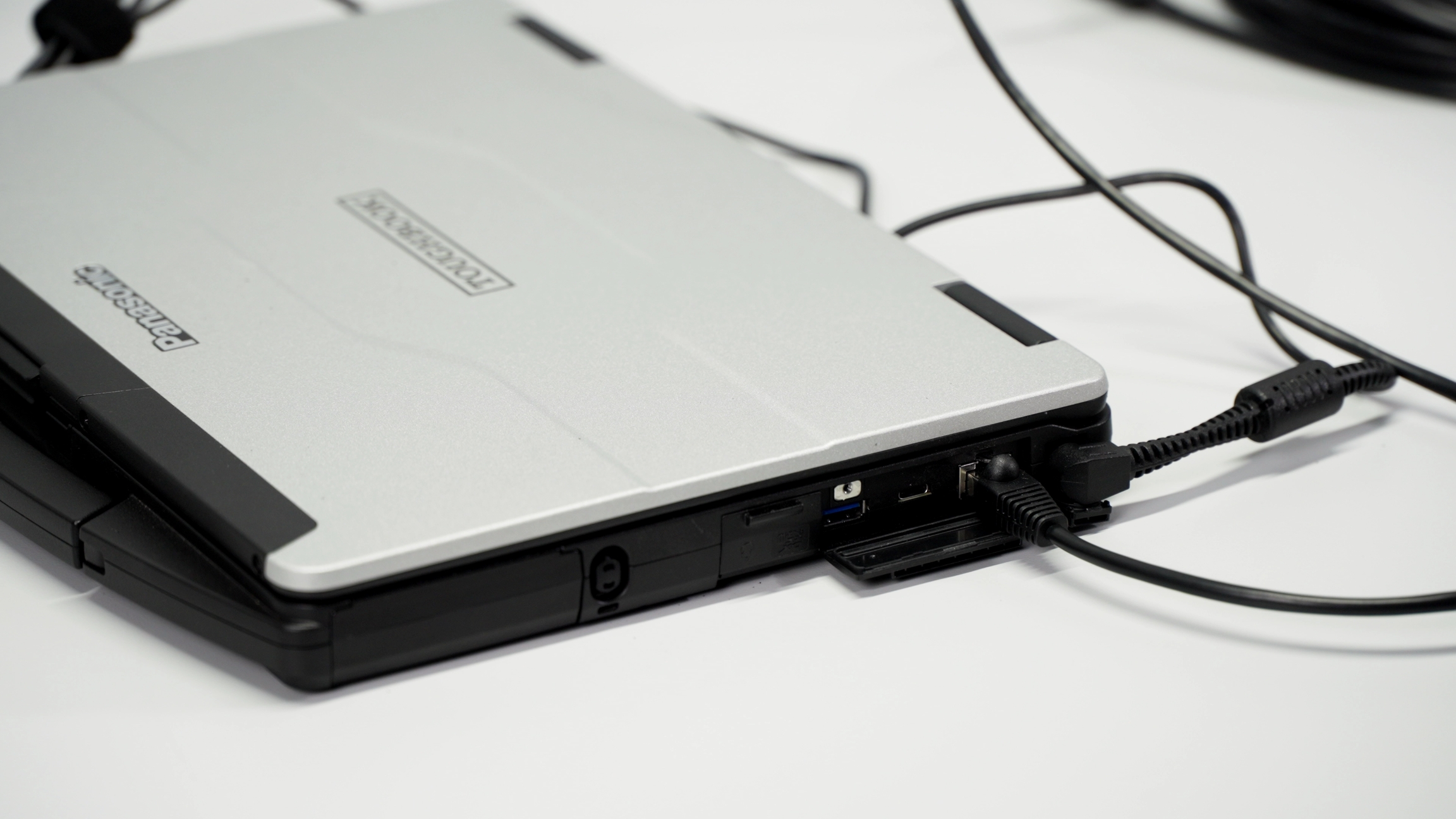 Connect the Ethernet plug from the Silvus breakout cable to the Ethernet port on the Toughbook.