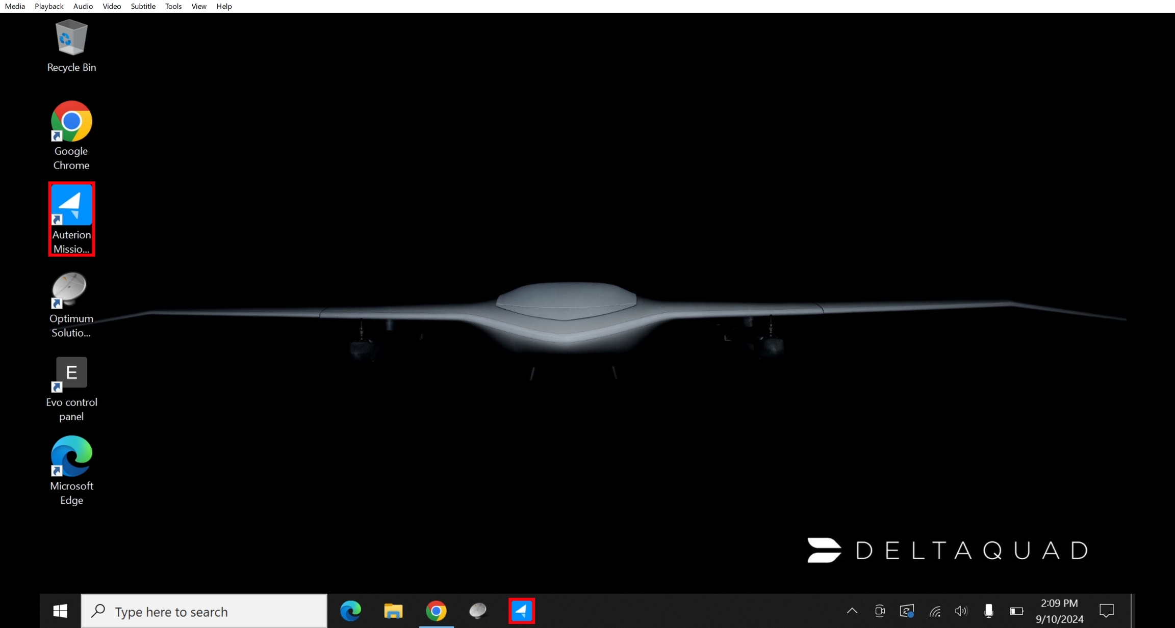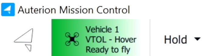 In the upper left corner of AMC, the vehicle status indicator will show the connection status to the DeltaQuad Evo. When the indicator is green (Ready to Fly), the vehicle is ready for takeoff.