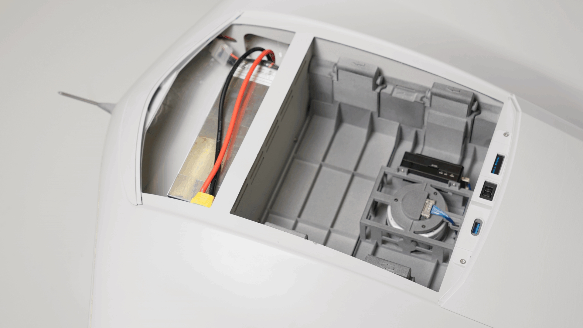 Depending on the installed payloads, the DeltaQuad Evo will automatically balance itself by moving the main battery tray either forward or backward.