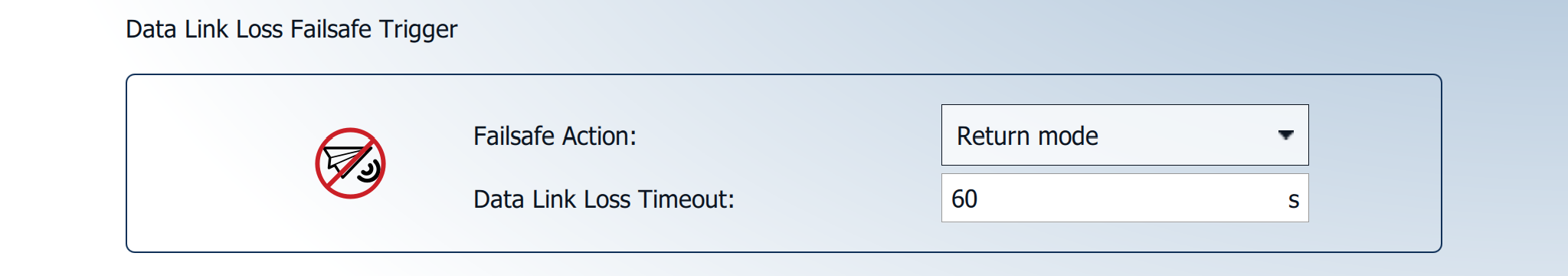 The Data Link Loss Failsafe Trigger controls the behavior of the vehicle when the telemetry link is lost.