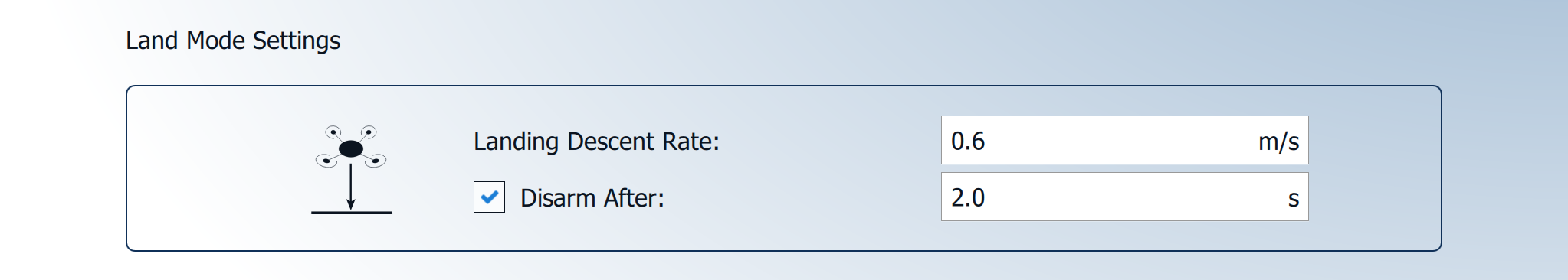 The Land Mode Settings control the landing behavior of the DeltaQuad Evo.