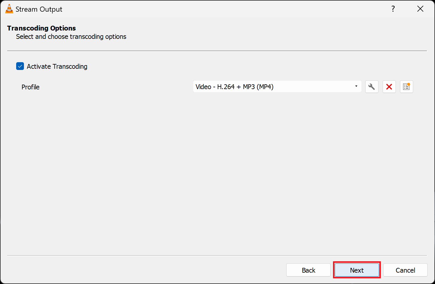 Click "Next" in the "Transcoding Options" window.
