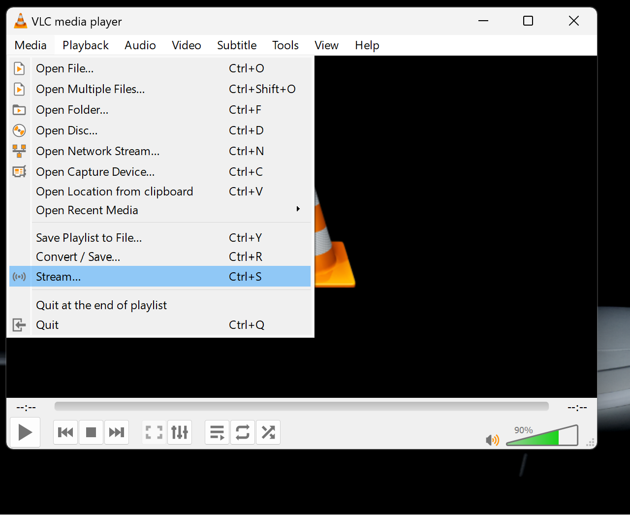 Go to "Media" and open the "Stream..." function.