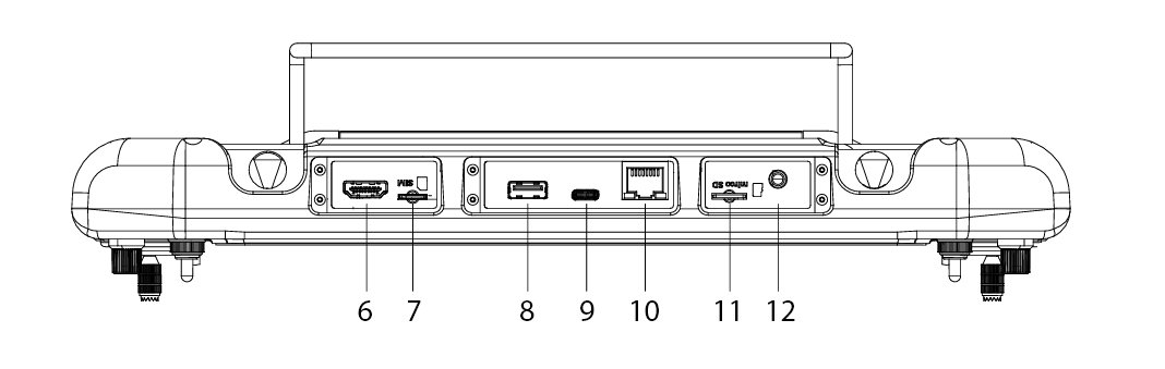 <table data-header-hidden><thead><tr><th width="256.3333333333333"></th><th></th></tr></thead><tbody><tr><td>Number</td><td>Interface</td></tr><tr><td>6</td><td>HDMI*</td></tr><tr><td>7</td><td>4G SIM card slot</td></tr><tr><td>8</td><td>USB</td></tr><tr><td>9</td><td>Type-C</td></tr><tr><td>10</td><td>LAN (RJ45)</td></tr><tr><td>11</td><td>Micro SD card slot</td></tr><tr><td>12</td><td>PPM</td></tr></tbody></table>