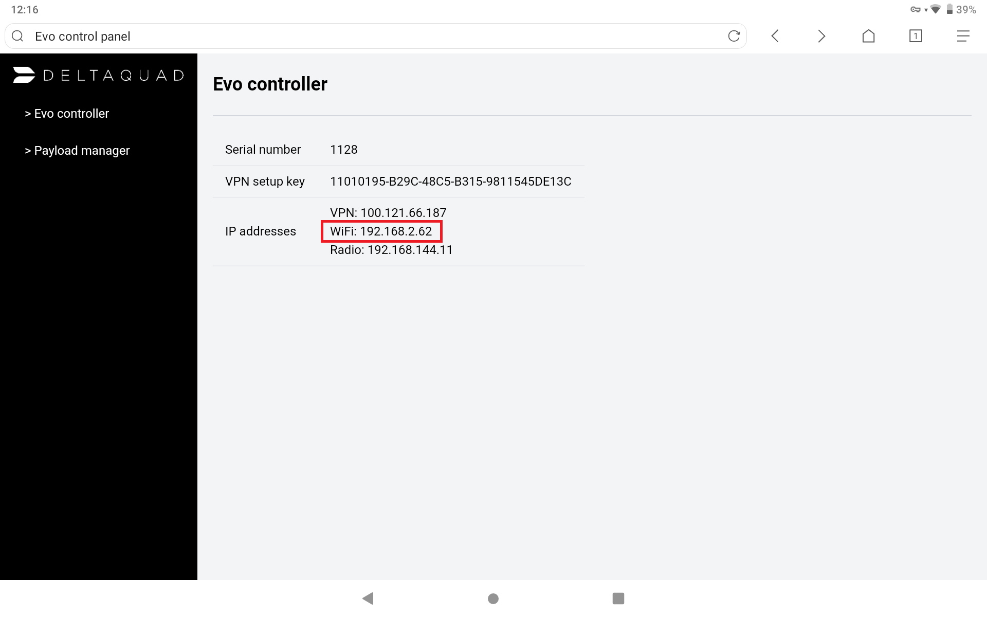 #### Connect to the DeltaQuad Controller via hotspot.