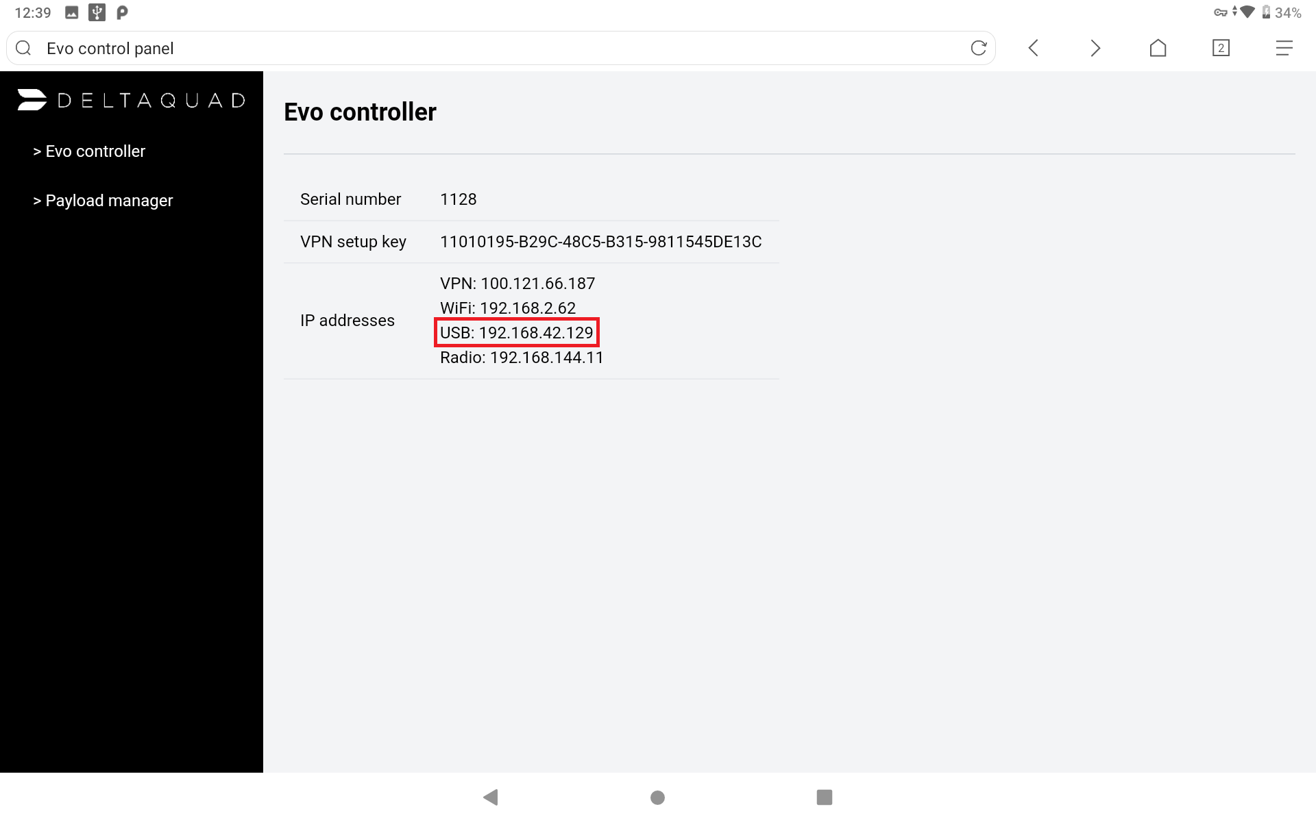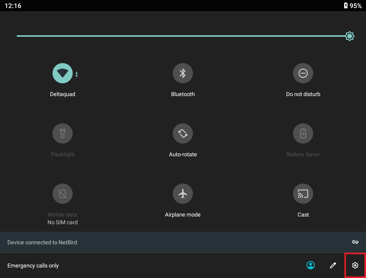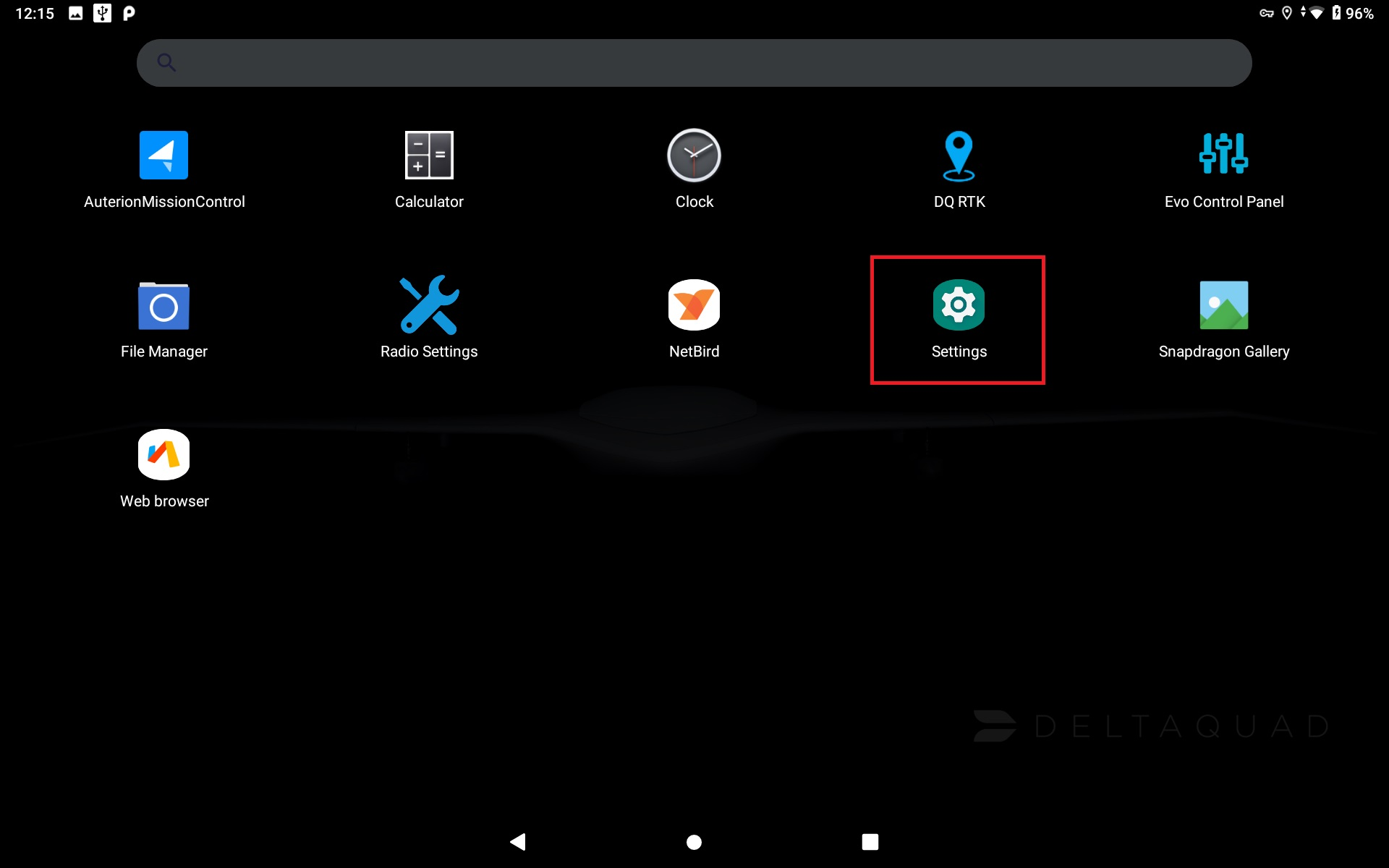 3. If not automatically done, USB Tethering must be enabled on the DeltaQuad Controller. You need to navigate to the settings menu (cogwheel).&#x20;