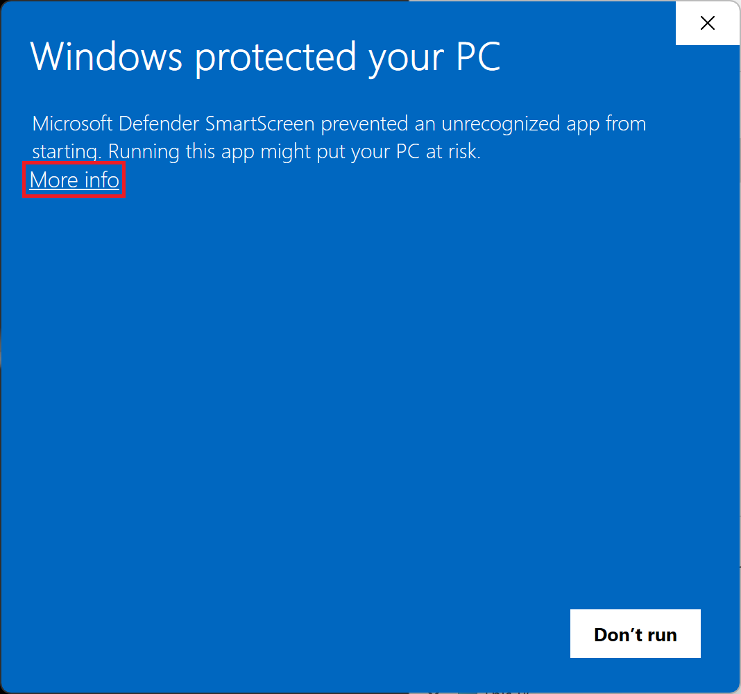 2. Download and run the installer. On Windows, a window might pop up saying *Windows protected your PC*. Click on *More info* and *Run anyway.*