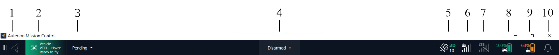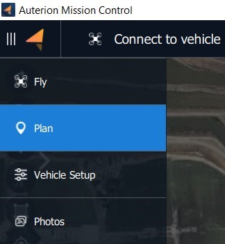 When opening Auterion Mission Control by default the Fly View will be selected. To change to the Plan View Click on the Menu icon