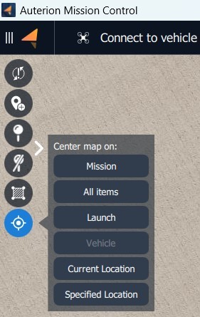 gives multiple options to center the map on a mission, home, vehicle, all items, or a specified location.