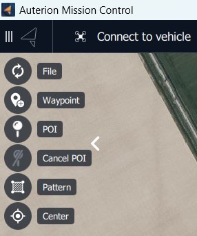On the left side of the screen, the Plan Tools are located. The Plan Tools provide tools for working with plans, including adding waypoints, inserting survey patterns, saving, loading, uploading, and downloading plans. Some of the options are only displayed when working on a particular type of plan.