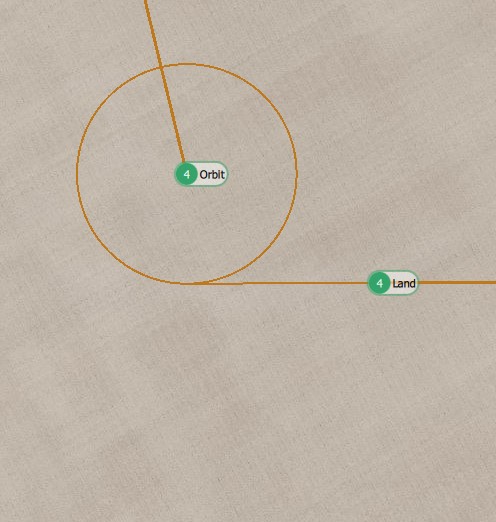 Landing Dist - The distance between the Orbit and the Land item will be automatically set to 50m. You can change this distance by dragging the Land item on the map or by using the slider. Values between 50m and 200m are available.