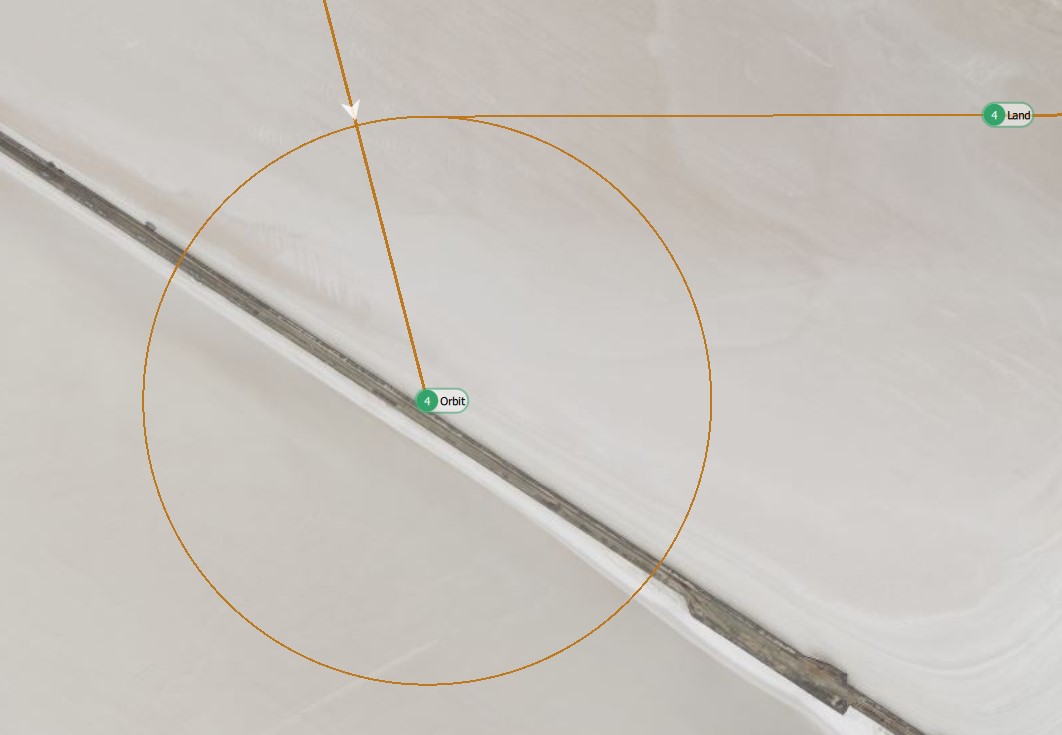 When choosing Add Loiter from the Mission End Action tab an Orbit waypoint will be placed on the map.