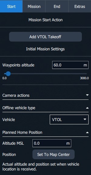 When selecting the Start tab the option Add VTOL Takeoff is available.
