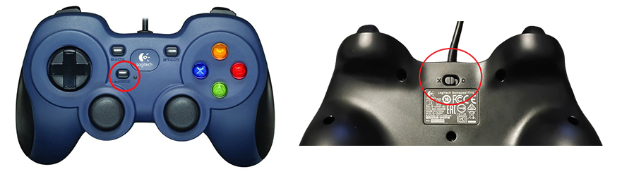 Before takeoff, ensure the Mode button is **not active** (no red light). The slider on the back of the controller must be in the default **‘X’ position** for the gimbals to function.