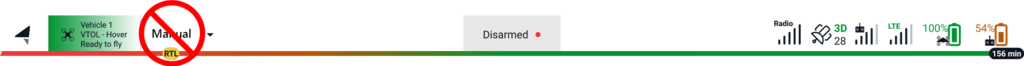 If a **loss of connection** occurs during repositioning the vehicle with the **Orbit** and **Fig** **8** command, the **Data Link Loss Failsafe Action** will be activated after the timeout. When disabled the vehicle will remain in **Hold** mode until the data link is re-established. If the data link cannot be restored, the vehicle will remain in **Hold** mode until the **Low Battery Failsafe Trigger** activates. If the failsafe action is set to **Return** mode, the vehicle will return to the designated landing location.