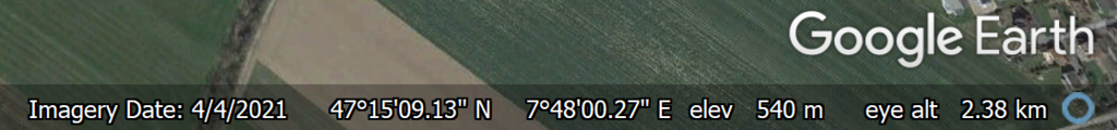 The altitude calculations in AMC and any Geographic Information System (GIS) software, such as Google Earth, do not account for the height of trees and obstacles. However, Google Earth has a higher resolution in terms of altitude calculation. In challenging conditions, it is recommended to consult Google Earth and verify the correct altitudes of the mission area. Mission plans can be exported as a KML file by navigating to File -> Local Storage -> Save as KML and then imported into Google Earth. By moving the mouse around, you can see the absolute altitudes in the bottom right corner. Note: these are ground altitudes, not tree-top heights.