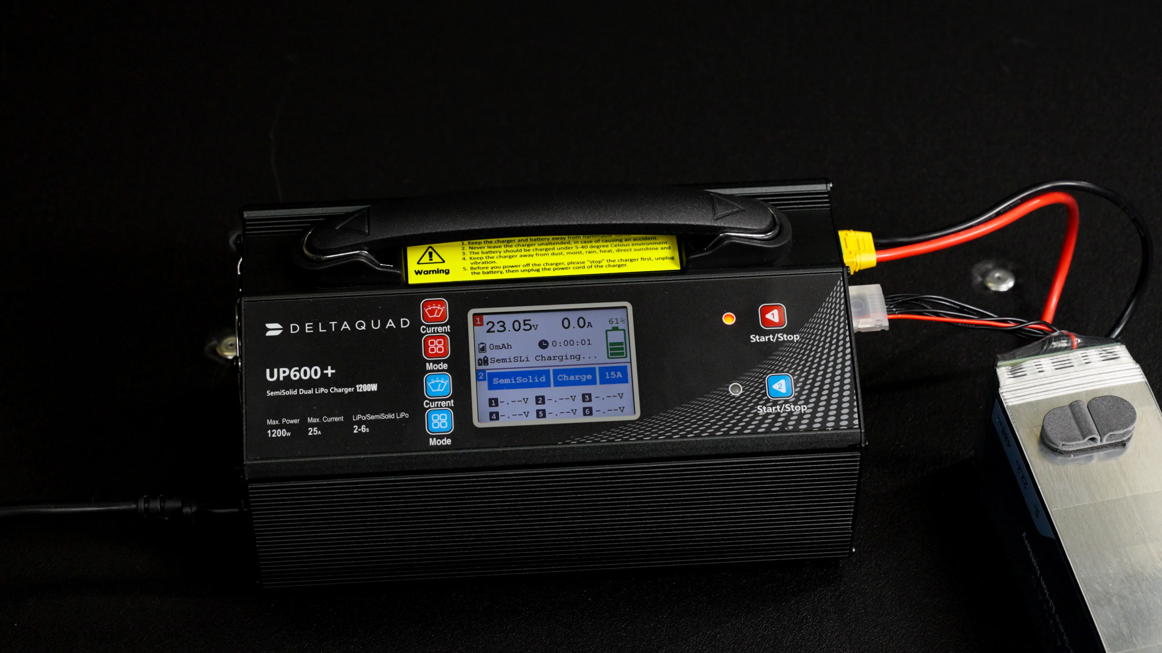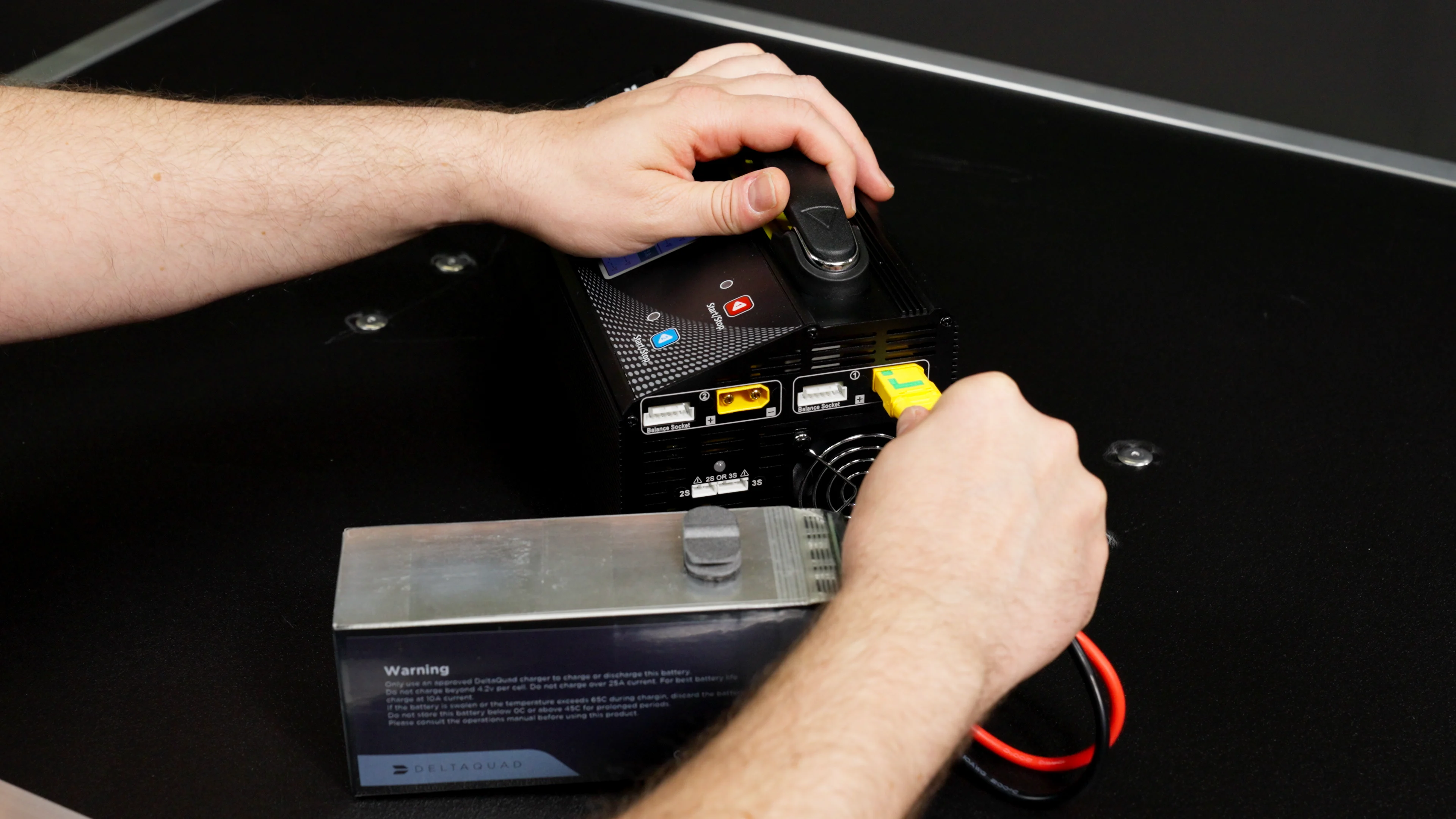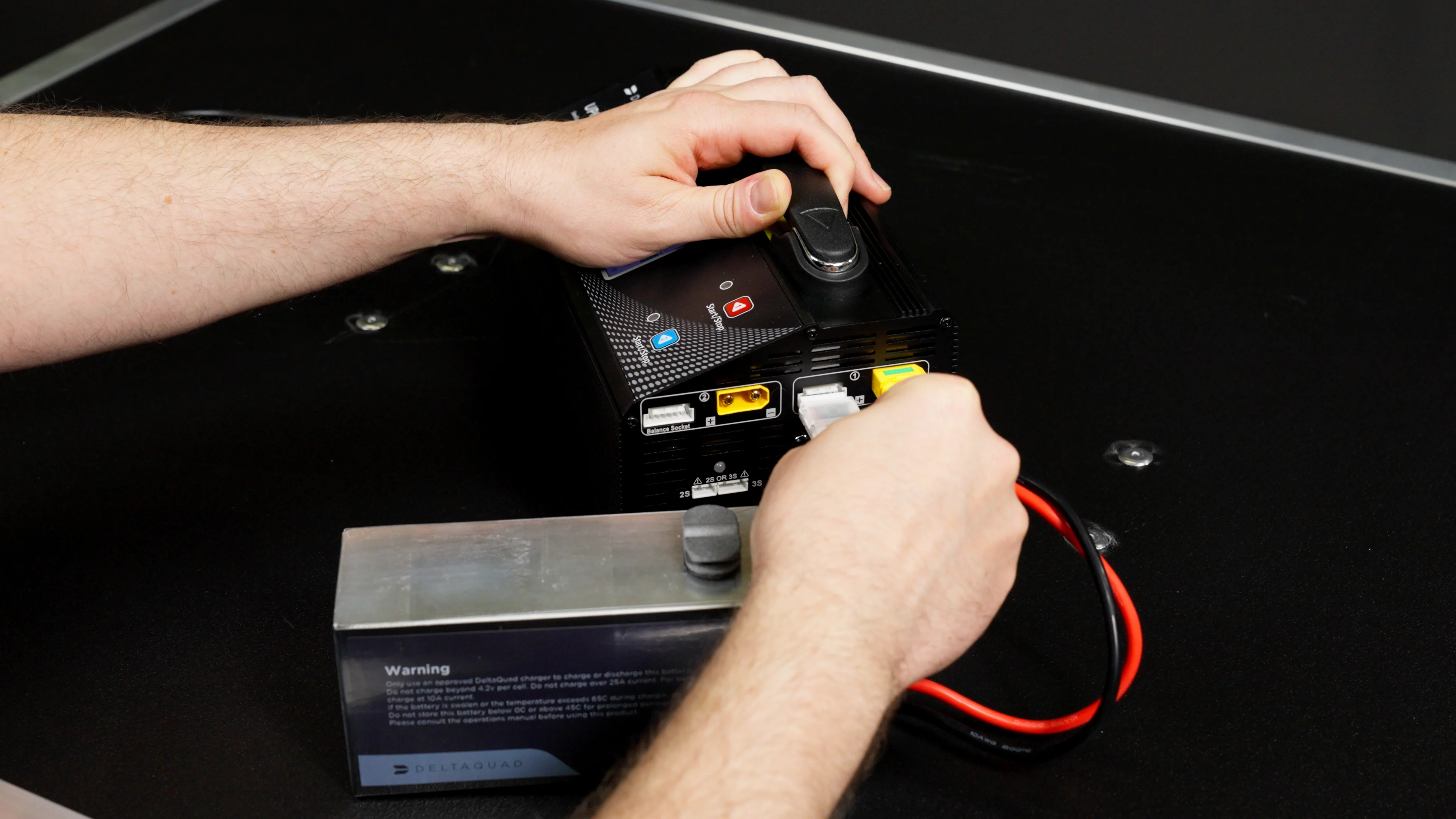 When not using the battery for an extended period, it is recommended to store it with the provided DeltaQuad Dual Battery Charger. This will ensure the battery is charged or discharged to 3.7V per cell, which equals 50% of its capacity.