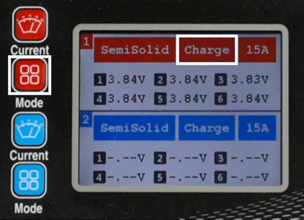 * Each channel has two buttons: one for **Current** and one for **Mode**.