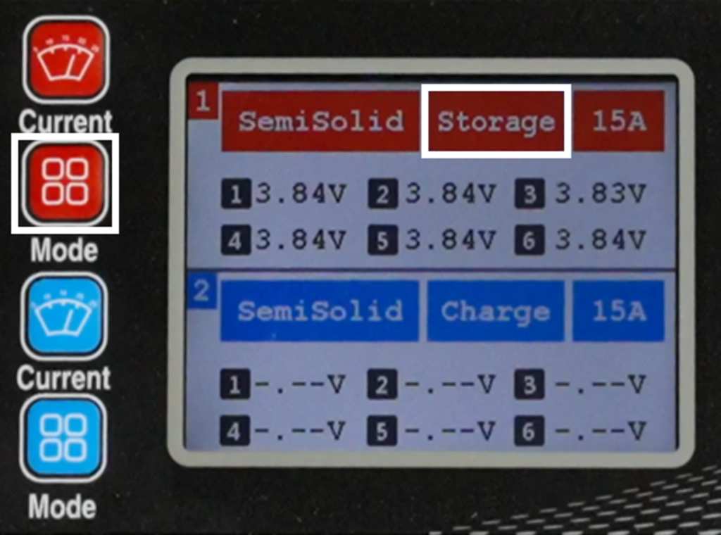 * Set the mode to **Storage** by pressing the **Mode** button.