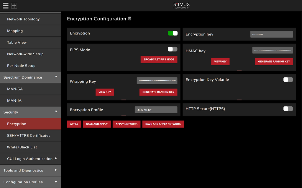 The following section explains how to change the encryption settings for the Silvus radio network.